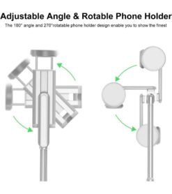 Simple to Use & Universal Fit – Fast Bluetooth connection with your phone. you can easily use this hand holding selfie stick by pushing the shutter control button. You can use it for a close self-photography or extend it to get a larger scenery. What’s more. you will be using it as a desktop phone holder. doing live internet broadcast. binge-watching TV shows. etc. With a very flexible adjustable view height. the nape ache. shoulder pain will be substantially reduced.